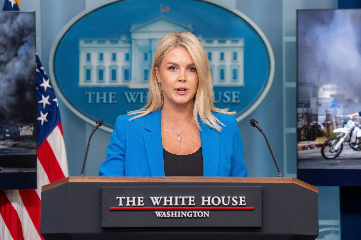 White House Press Secretary Karoline Leavitt, wearing a cross. Think about it. Image credit: Joey Sussman/Shutterstock