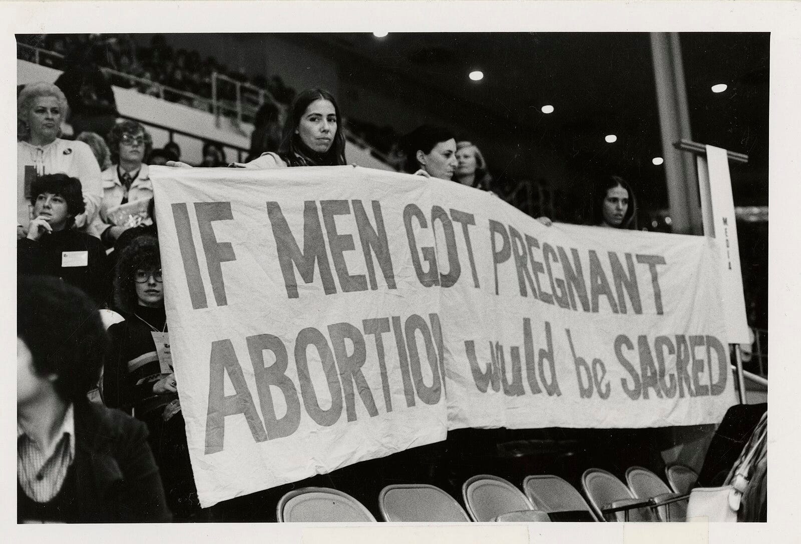 Delegates holding a pro-choice banner at the 1977 National Women’s Conference in Houston, Texas. Photo credit: National Archives/Wikimedia Commons