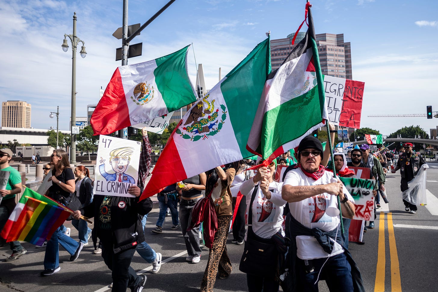 Los Angeles has been organized to defend migrants all year: in a February protests, marchers wave Mexican flags and pronounce Donald Trump “El Criminal.” Photo credit: Ringo Chiu/Shutterstock